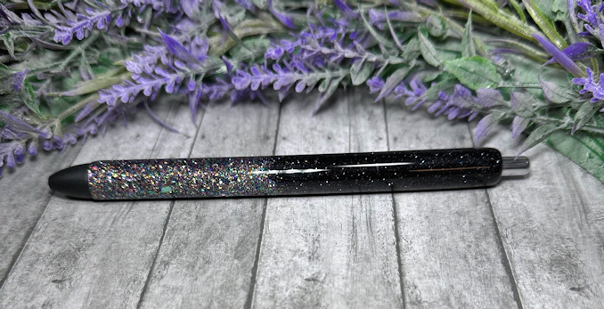 Handmade Holographic Silver and Black Ombre glitter pen with free refill
