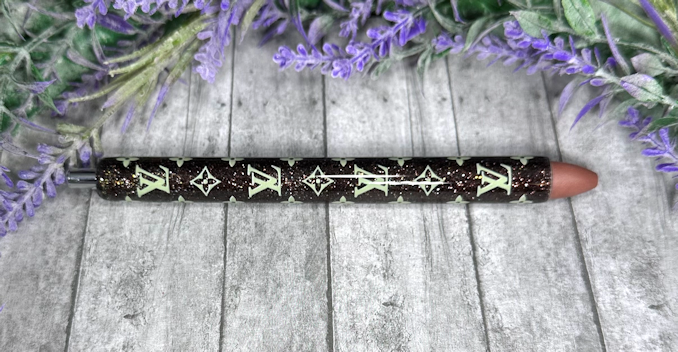 Handmade Louis Vuitton on brown glitter pen with free refill