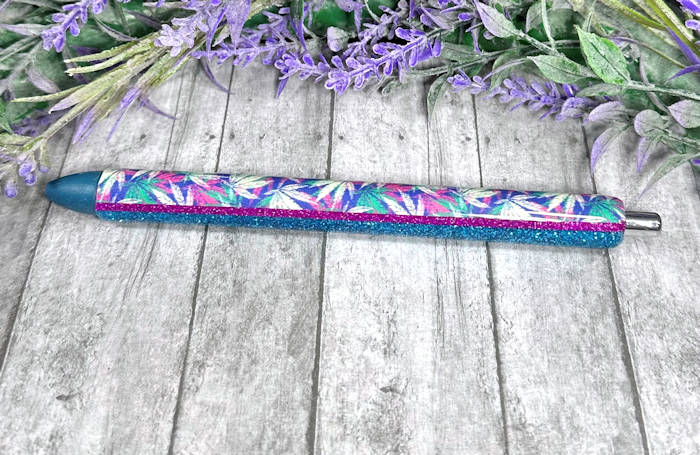Handmade Marijuana Leaves on Blue glitter pen with free refill
