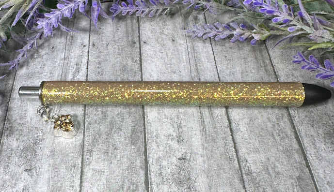 Handmade Medium Gold Dog Paw dangle charm glitter pen with free refill
