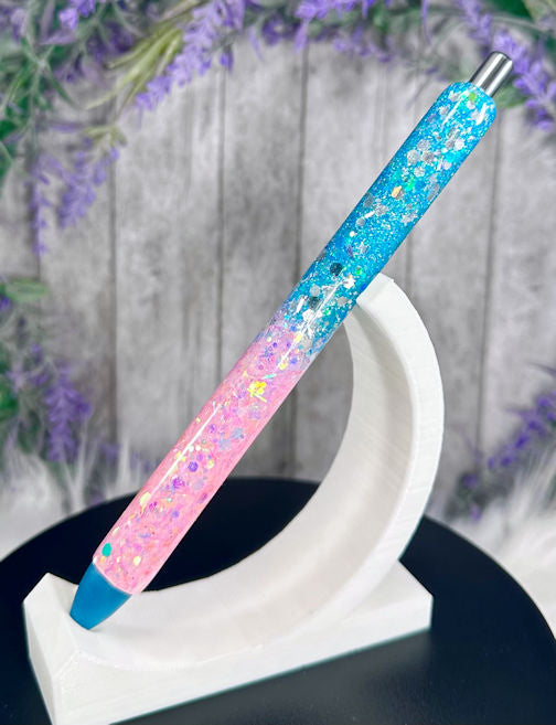 Handmade Ombre Aqua Blue and Pink Chunky glitter pen with free refill