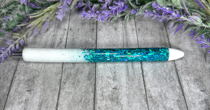 Handmade Ombre Dark Aqua and White glitter pen with free refill
