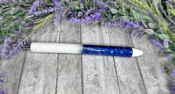 Handmade Ombre Navy Blue and White glitter pen with free refill