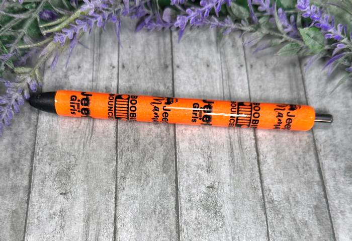 Handmade Orange Jeep Girls glitter pen with free refill