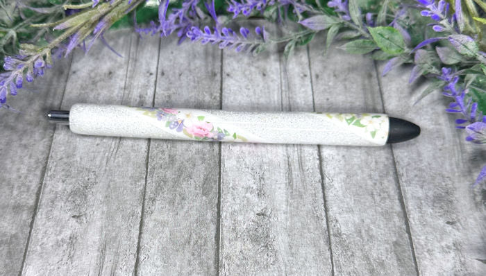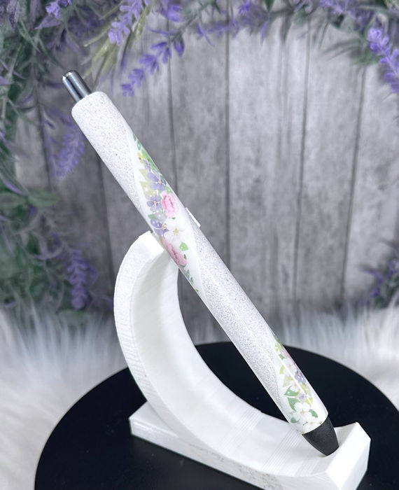 Handmade Pastel Flowers glitter pen with free refill