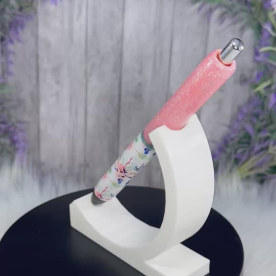 Handmade Peach and mint green flowers ombre glitter pen with free refill