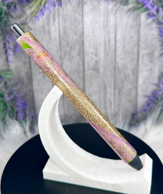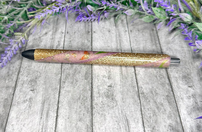 Handmade Pink and Gold Butterflies glitter pen with free refill