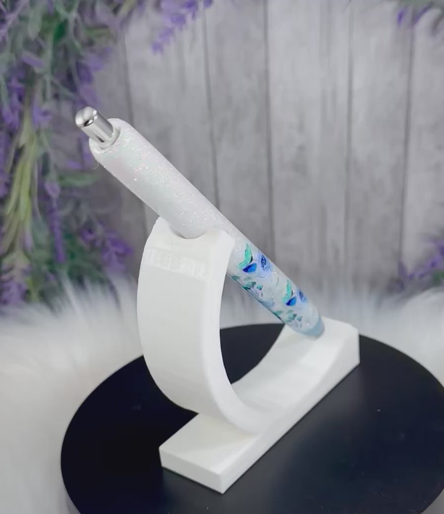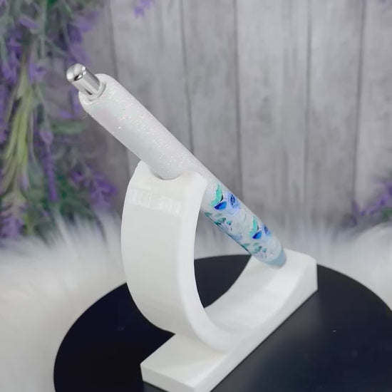 Handmade Purple and Blue Flowers glitter pen with free refill