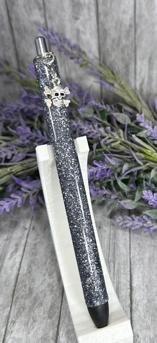 Handmade Skull and Crossbones dangle charm glitter pen with free refill 2